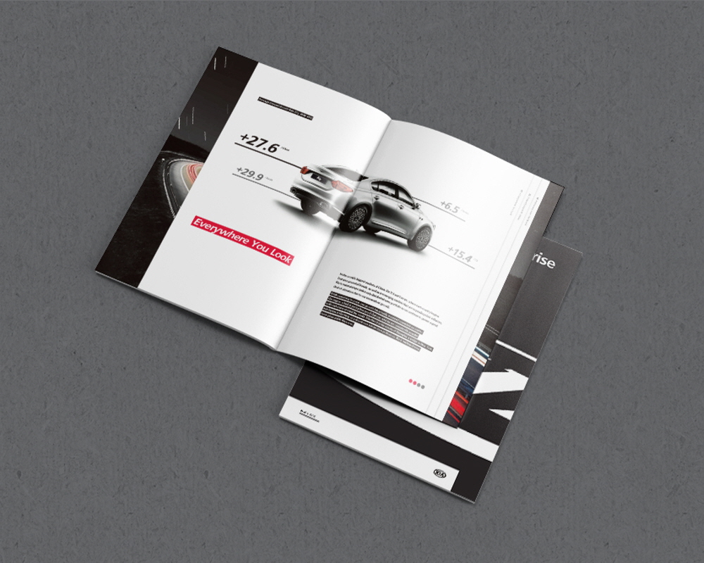 기아자동차는 우리와 오랜 파트너십을 맺고 있는 기업으로, 품격있고 실용성있는 브로슈어를 함께 제작하고 있습니다. 멋진 이미지와 그에 어울리는 카피, 일러스트와 인포그래픽의 적절한 활용으로 기아자동차의 매력이 넘치는 브로슈어가 탄생했습니다.