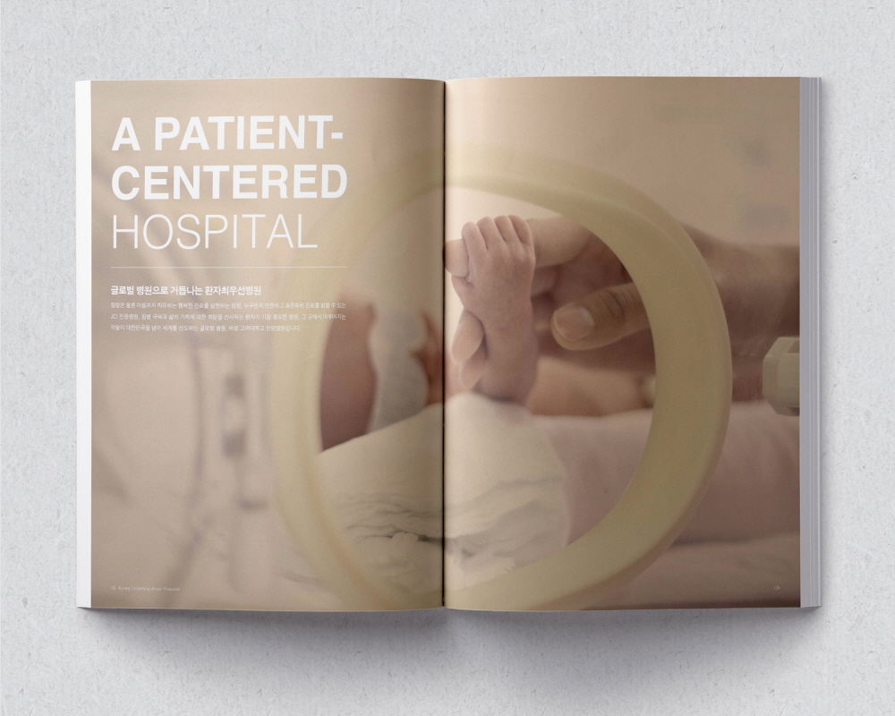 고대의료원, 안암병원, 구로병원, 안산병원 총 4종으로 제작된 고려대학교병원의 브로슈어입니다. 지역사회에 좋은 영향력을 전파하고 함께 발전한다는 메시지를 담은 표지 디자인은 고급스러움과 깔끔함이 느껴집니다. 여백과 도표를 중심으로 정보를 가시성있게 편집해 이해를 돕고 있으며, 국문을 비롯해 다양한 외국어로 제작되어 고려대학교병원을 소개하고 있습니다.