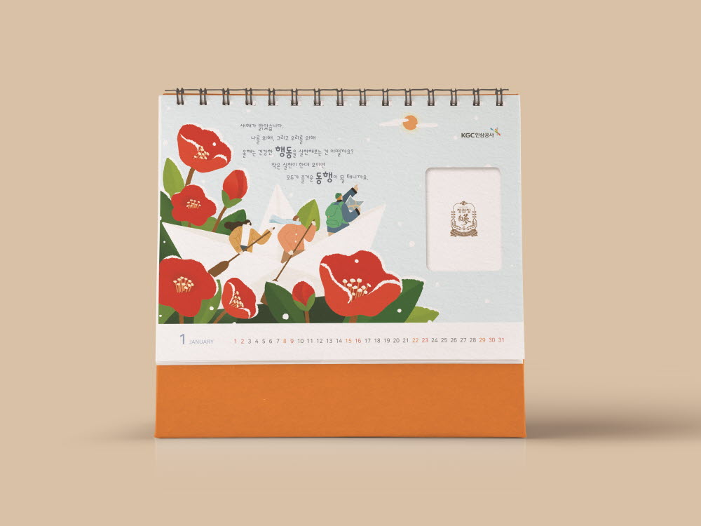 대한민국을 대표하는 글로벌 종합 건강기업 KGC인삼공사의 2022년도 기업캘린더입니다. 최근 2년 동안 지속된 팬데믹을 겪으면서 우리는 몸과 마음의 건강, 그리고 건강한 삶에 대한 소중함을 깊이 깨닫고 있습니다. '삶을 건강하게 만드는 12가지 방법'을 테마로 일상에서 실천할 수 있는 실천의 아이디어를 감성적인 비주얼과 카피로 담아냈습니다.